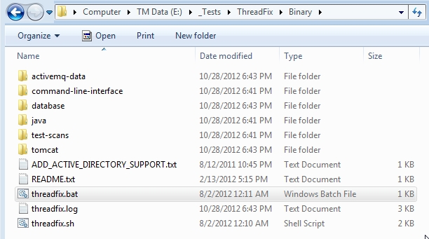 Then I unzipped the [ThreadFix101.zip](http://code.google.com/p/threadfix/downloads/detail?name=ThreadFix101.zip&can=2&q=) files into a local folder and executed ‘threadfix.bat’