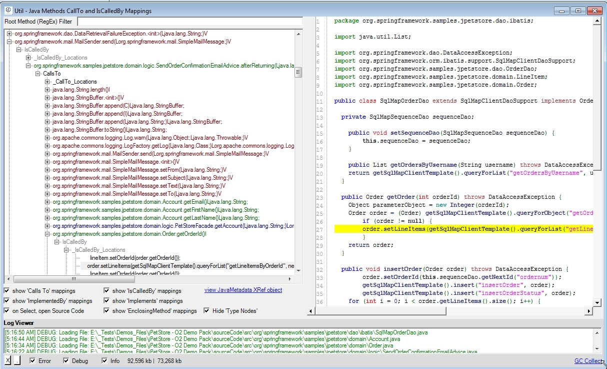 Then if you drop a jar (or the zip of *.classes like the one you will find in the jPetClinic – O2 Demo Pack.zip that you get from the Packaged Spring MVC Security Test Apps: JPetStore and PetClinc ), a series of conversions will occur (Jython is used to parse the java byte code) :