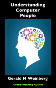 I've always been interested in helping smart people be happy and productive. To that end, I've published books on human behavior, including Weinberg on Writing: The Fieldstone Method, The Psychology of Computer Programming, Perfect Software and Other Fallacies, and an Introduction to General Systems Thinking. I've also written books on leadership including Becoming a Technical Leader, The Secrets of Consulting (Foreword by Virginia Satir), More Secrets of Consulting, and the nine-volume Quality Software series.