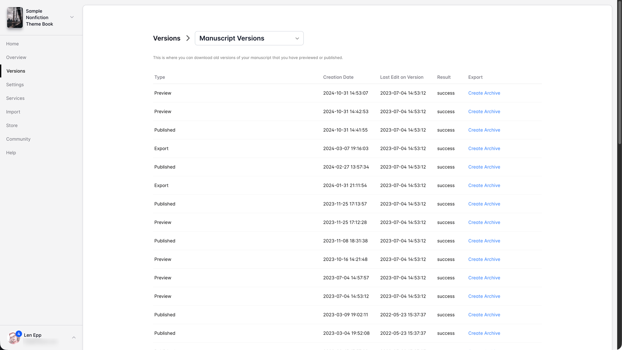 Lean Publishing Tip of the Day: Your Manuscript Versions Page