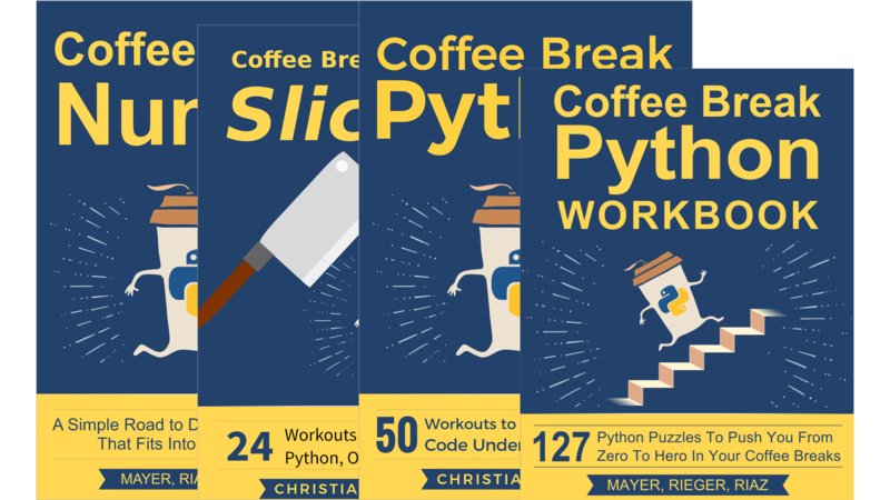 The Coffee Break Python book series teaches you Python in byte-sized code puzzles. You solve a code puzzle a day while you enjoy your morning coffee. It’s that simple.