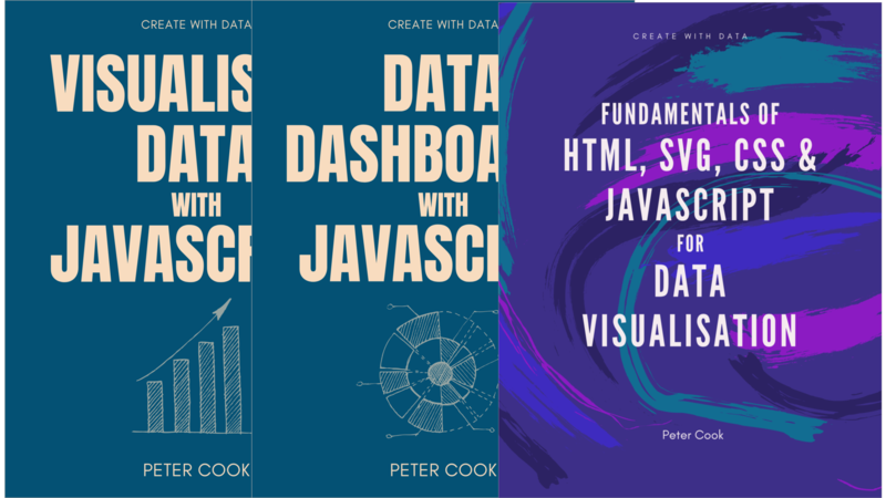 He's the author of four books: Visualising Data with JavaScript, Data Dashboards with JavaScript, D3 Start to Finish and Fundamentals of HTML, CSS, SVG & JavaScript for Data Visualisation.