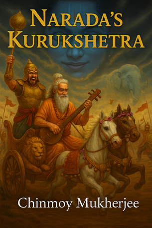 In "Narada's Kurukshetra," a satirical retelling of the Mahabharata war, author Chinmoy Mukherjee reimagines the epic conflict through the lens of divine comedy. Instead of choosing Krishna as his charioteer, the arrogant Kaurava prince Duryodhana selects the mischievous sage Narada Muni, believing his celestial wisdom will guarantee victory over the Pandavas. Unbeknownst to Duryodhana, Narada's true role is one of cosmic sabotage, transforming the battlefield into a stage for absurdity. Over the 18 days of the Kurukshetra war, Narada employs a series of escalating pranks to undermine Duryodhana's focus, erode his confidence, and dismantle the Kaurava forces, all while maintaining an air of innocent helpfulness. This narrative shifts the epic from tragic heroism to a humorous critique of hubris, where laughter becomes the ultimate weapon against unchecked ambition.