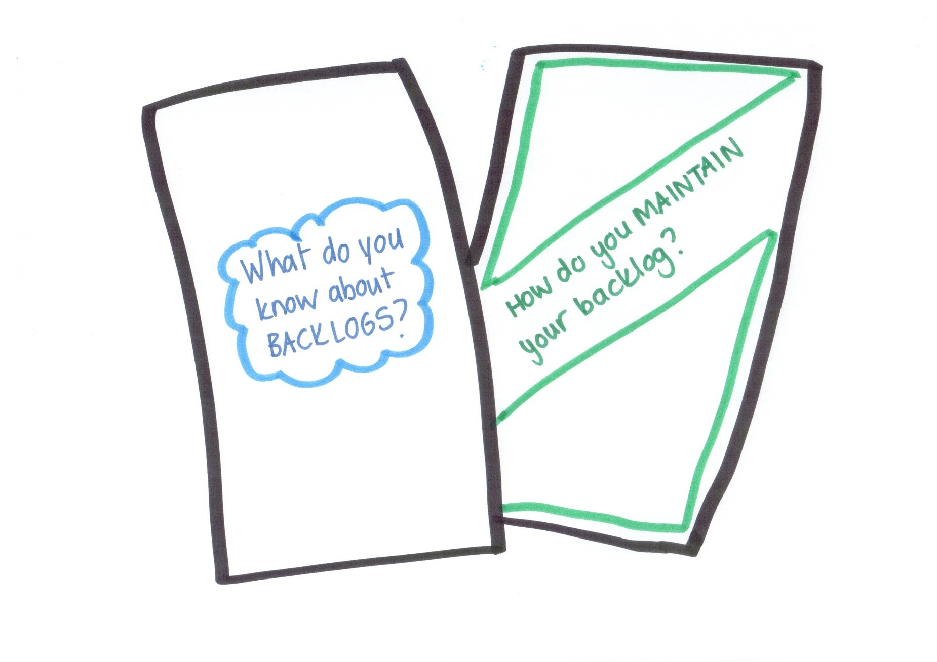 We start with Fast Pass posters. Ask everyone to write up one sticky note for each of the two posters. The posters we chose for this workshop are: “what do you know about backlogs” and “how do you maintain your backlog”. This allows for participants to immediately identify with the topic and for the facilitator to get a better understanding of any relevant issues.