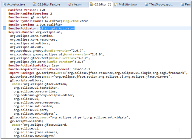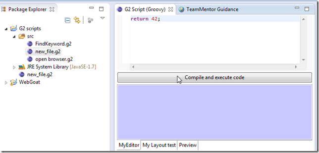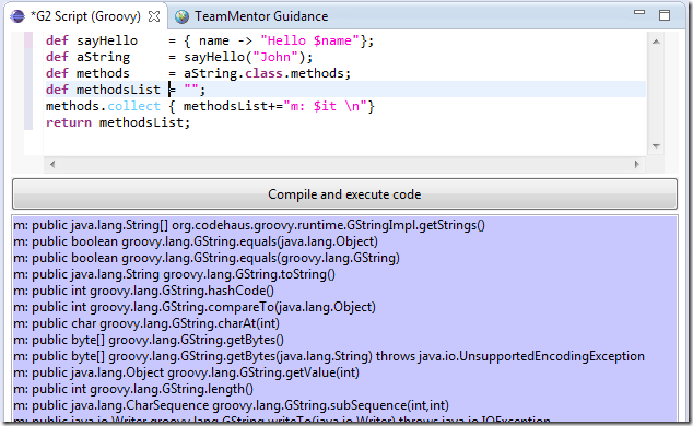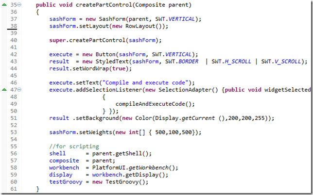 This last part is REALLY interesting/powerful, since it means that we can develop an groovy based API in real-time (2nd Eclipse instance), which is then added to the host eclipse instance (i.e. the plugin-code)