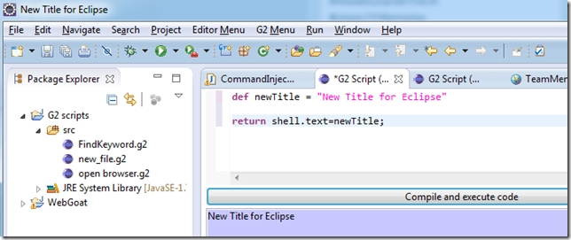 Here is a Groovy script that changes the title of the current Eclipse application: