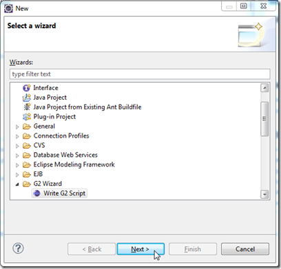… on the G2 Wizard category, select the Write G2 Script option and click next