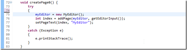 Back into the original/host Eclipse, the main changes on the MultiPageEditor.class file are the use of the MyEditor class: