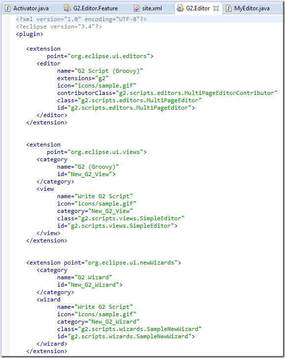 In the 2nd Eclipse, when a *.g2 file is opened, an instance of the MultiPageEditor will be created.
