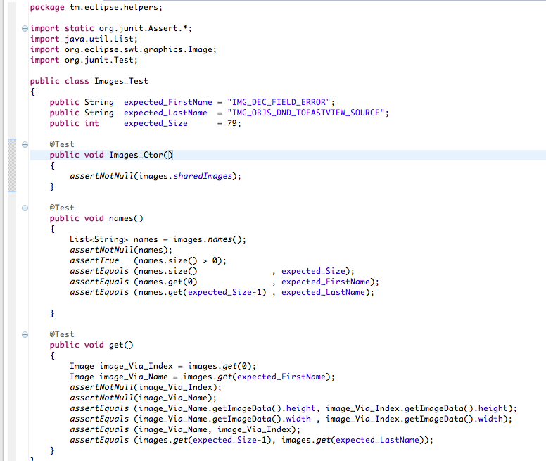 … which is the JUnit execution result of the tm.eclipse.helpers.Images_Test JUnit test class (note how the names JUnit test method failed with the Not Implemented exception)