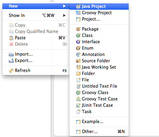 1) create a new Java Project