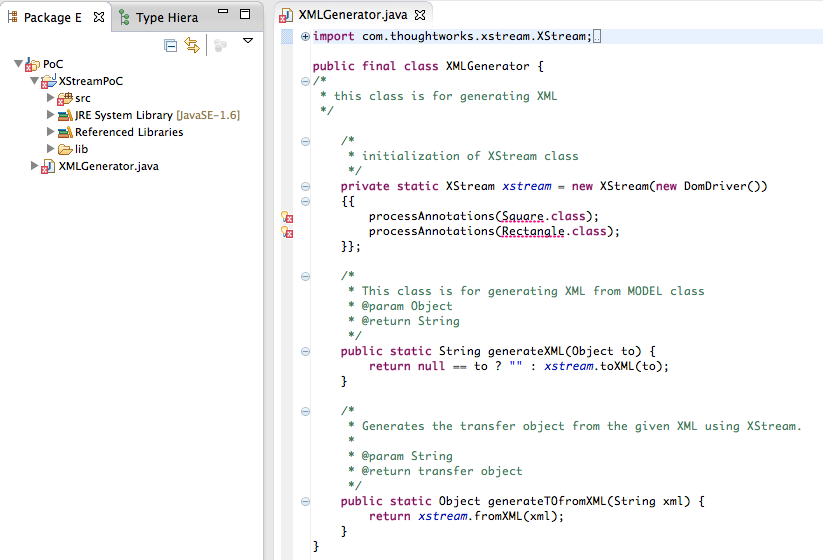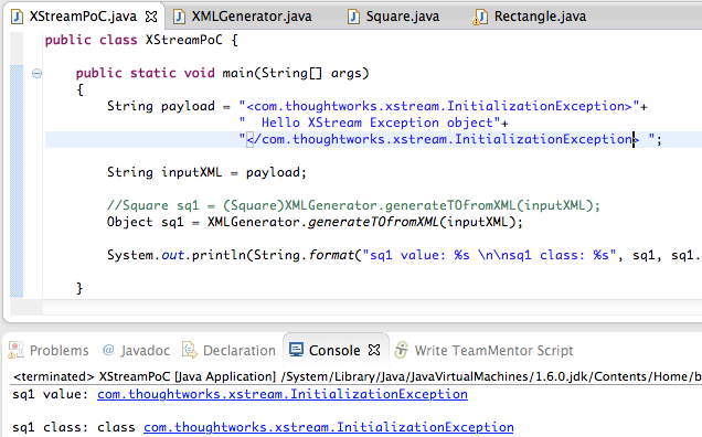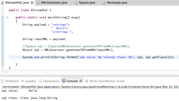 8) Go back to the Standard way to serialize and deserialize Objects with XStream page, and do the same thing for the Square.java and Rectangle.java files