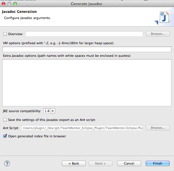 4) In the final step of the Wizard, click on Finish (note that the option to save it as a Ant Script is really cool, since that way we can automate this process using Ant)