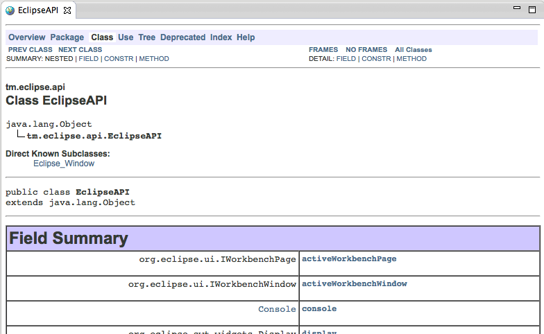 I want to create nice JavaDocs for the API I’m developing for TeamMentor’s Eclipse Plugin Builder Kit (see here , here and here) , but at the moment I’m not having the results I want (see at the end of this post screenshots of the type of JavaDoc I want to create).