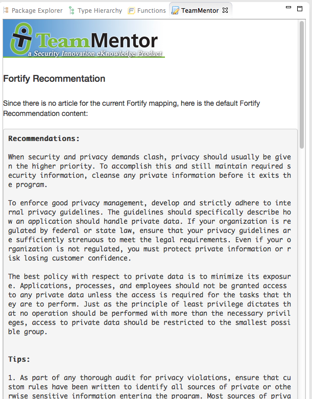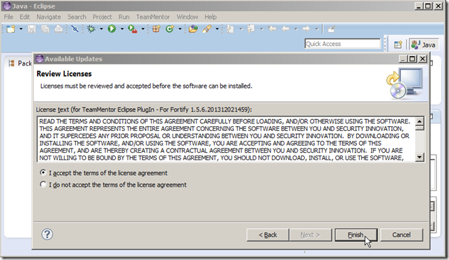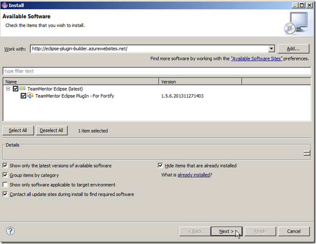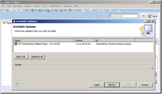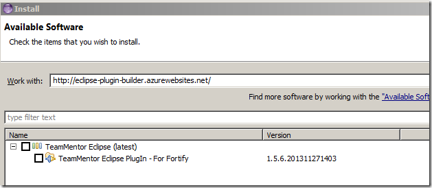 …select the TeamMentor Eclipse PlugIn – For Fortify option and click Next