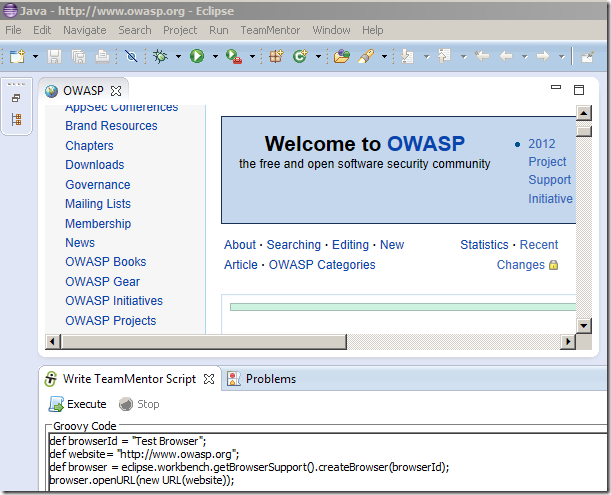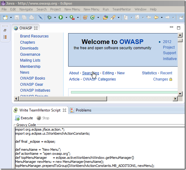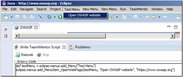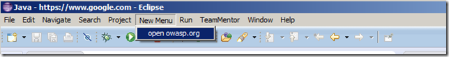 - Installing Eclipse Plugin Builder, accessing Eclipse objects and adding a new Menu Item that opens Owasp.org website