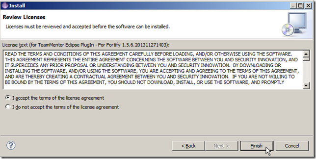 … accept the terms and click Finish: