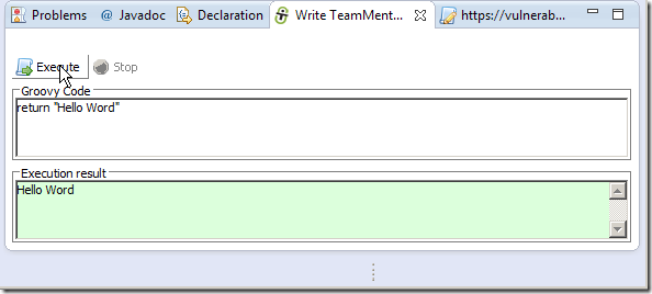 … and click on Execute to see the Hello World in the Execution result panel