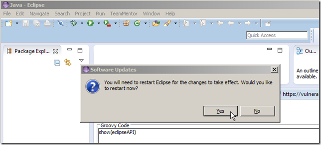 Next, I switched to the _test Eclipse _ (the one opened from the dev Eclipse), and wrote this Groovy script: