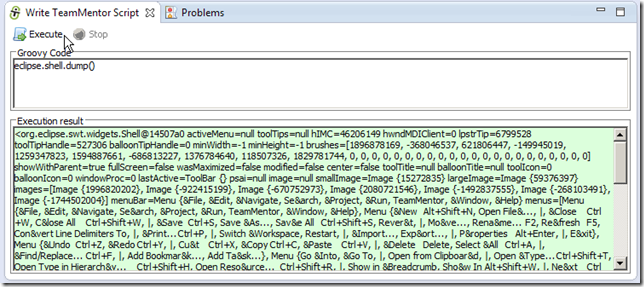 note: since we are using Groovy we can also use: eclipse.shell.dump()