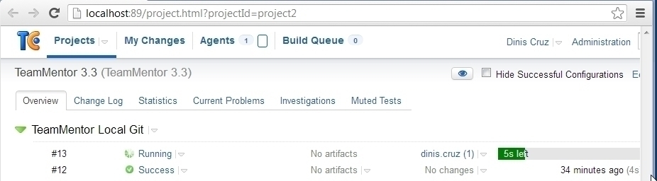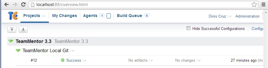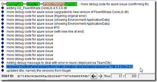 Once we found the solution (and pushed a new version of FluentSharp.CoreLib.dll to Nuget), it was time to clean up the history (since those commits don’t really need to be in the main TM master). Yes I could had used a branch, but since this was part of the TeamCity deployment tests, It was useful to do it on the master branch (and see how fast TeamCity can be :) )