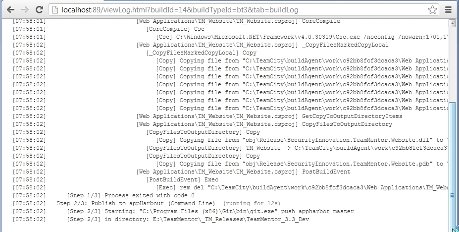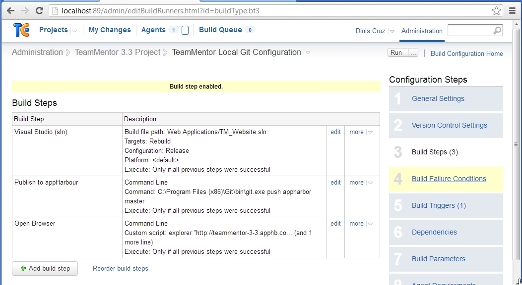 Using TeamCity to build on Git Commit, deploy to AppHarbor and open browser