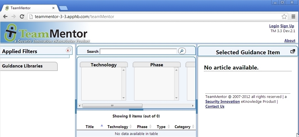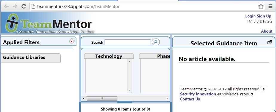 It all starts with a deployed instance of TeamMentor at version Dev.2.1 (see top right)