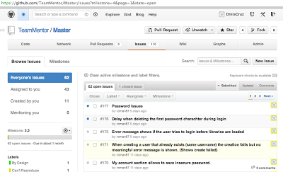 Before (when started to use GitHub for TeamMentor development) we used the private repository https://github.com/DinisCruz/TeamMentor-v3.0/issues