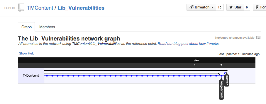 Note: this workflow would had been easier if the two repos where in sync, but it happened that there was one commit made to TMContent/Lib_Vulnerabilities (which is the master repo) on the 13th of Dec (d26f385) in between a bunch of updates to the tm-sme/Lib_Vulnerabilities repo (done automatically by TeamMentor). Bottom line: at this stage the repos are not compatible, which is why the GitHub Pull Requests don’t work.