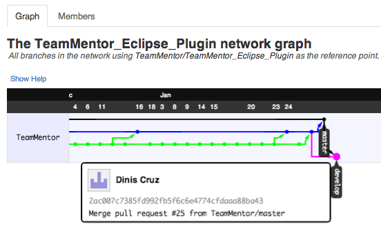 But the same commit can be seen below as the large GREEN dot in the TeamMentor/TeamMentor_Eclipse_PluginParent repo (note that it is not the last one in this repo):