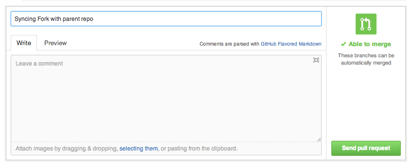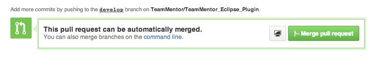 And since the commits are all compatible, I can just click on the ‘Merge pull request’ button: