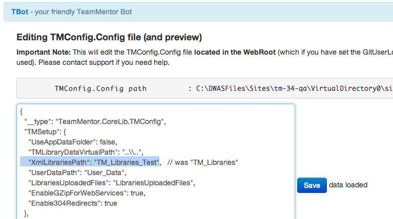 … changing the TMConfig.config file XmlLibrariesPath value: