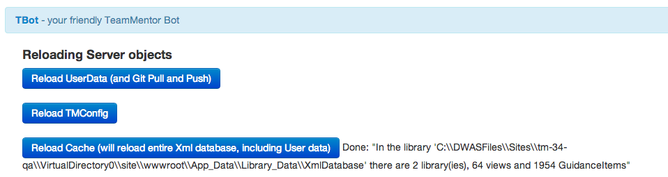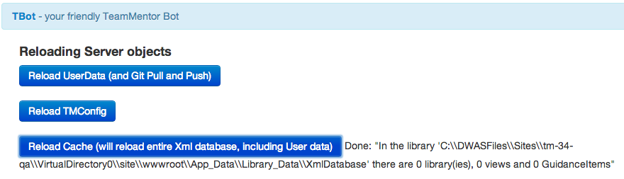 .. until a message shows up that says how many libraries and GuidanceItems/Articles exist in the current server (which means that the git clone was successful and the TM server cache was reloaded)