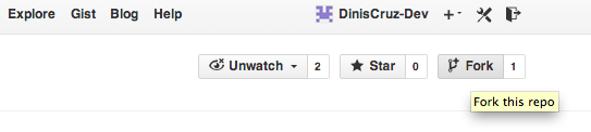 Next, logged in as DinisCruz-Dev (which is my day-to-day GitHub not-very-privileged account), I clicked on the Fork link: