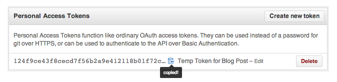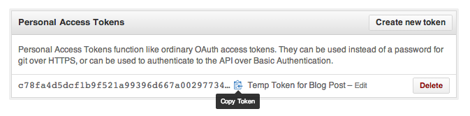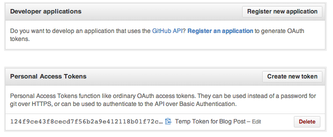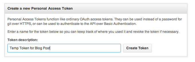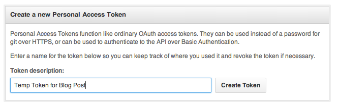 I clicked on the Create new Token button from the Personal Access Tokens section (part the Applications area)