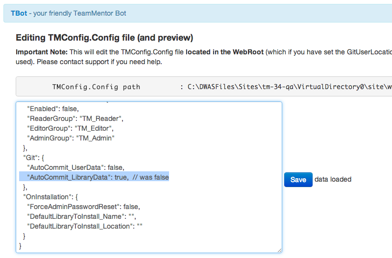 Go back to TBot and reload the UserData (which will trigger a Git Pull and Push of the UserData repo):