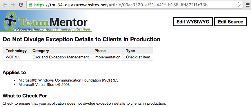 Lets start with an Azure hosted TeamMentor server, for example this one: