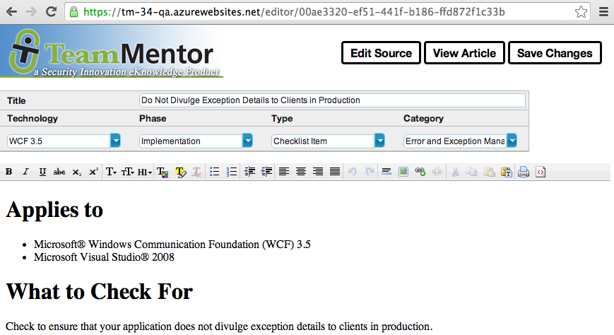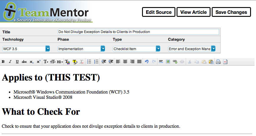 As you can see by the recent eclipse related posts, I have been working on a Plugin for Eclipse that shows TeamMentor guidance to users that have access to the Fortify Eclipse plugin (and *.fpr files). We are now in the final stages of releasing the first public version (1.6.0) which is actually made of two parts: An Eclipse Plugin builder (which is Open Source) and a small ‘Fortify Specific’ code-mapping script. Very soon these will be in separate projects, but for now they are all hosted at the TeamMentor/TeamMentor_Eclipse_Plugin.