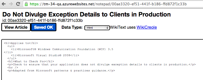 To really see the ‘real time’ commits and pushes, go back to the TM Article and make another change (this time around I’m using the ‘Notepad’ editor):