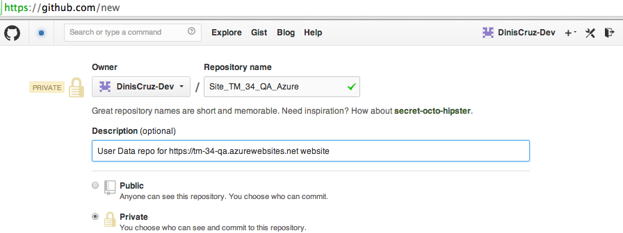 In this case I’m going to create the Site_TM_34_QA_Azure repo, where I followed a convention that we have for UserData repos nanes: Site{Url} or _Site{ServerType}_. Which in this case is Site_TM_34_QA_Azure