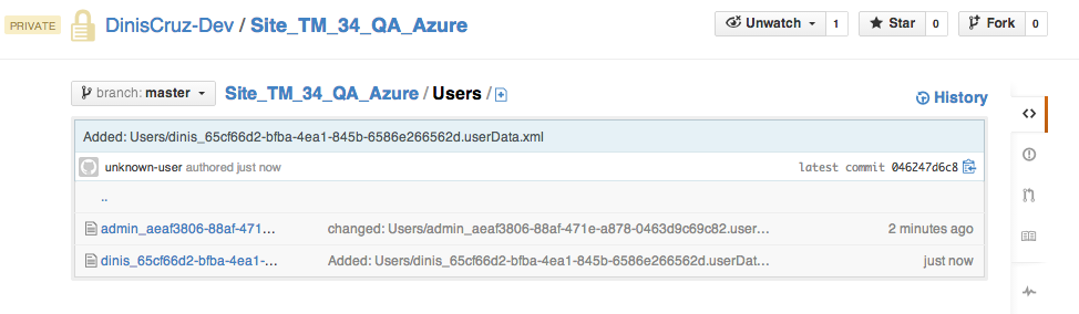 We can also confirm in the DinisCruz-Dev/Site_TM_34_QA_Azure repo that the UserData default files have been created (which also confirms that the connection between TeamMentor and Git’s UserData repo is working ok)
