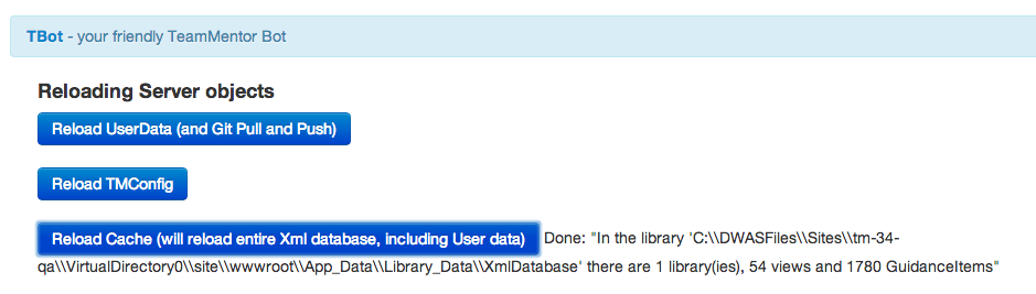 The best solution is to go to the TBot’sReload Server Object’s page and click on the Reload Cache button: