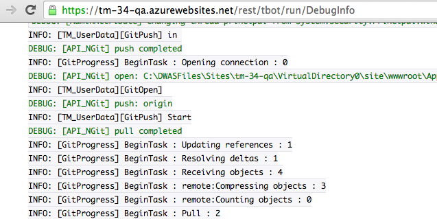 We can also double check on the TBot’sDebugInfo page that the UserData now points to a different folder (note that the folder name is based on the repo name)