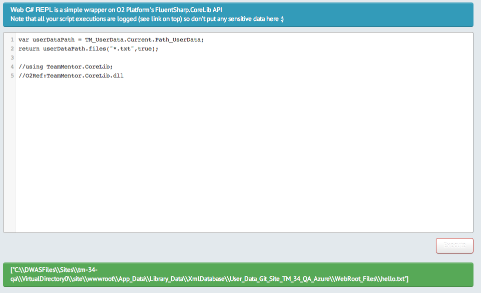 Here is a simple C# script that confirms that the file is already in the local UserData folder (this script was executed in the C# REPL that is part of TeamMentor’s admin features)