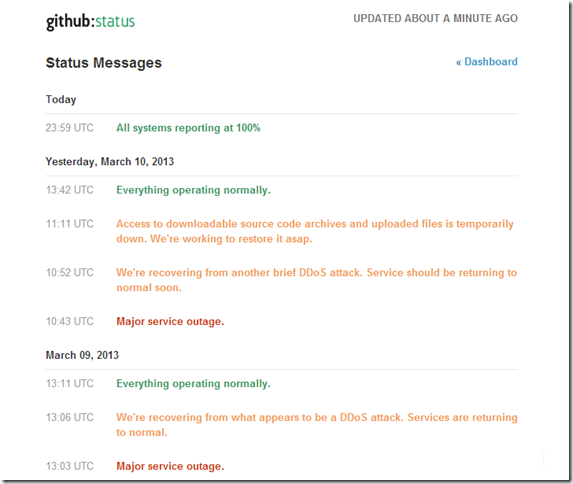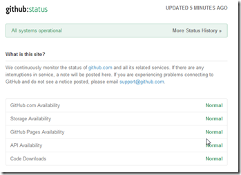 - GitHub.com needs to improve their the ‘Normal’ status definition and error reporting dashboard