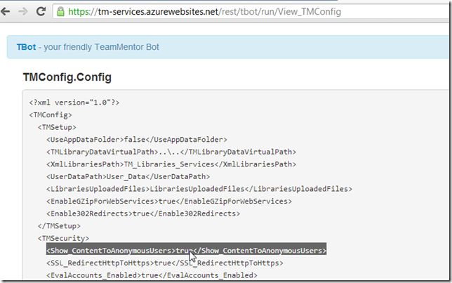 I was asked by Serge to retrieve some changes he made to a test version of TM hosted in Azure.