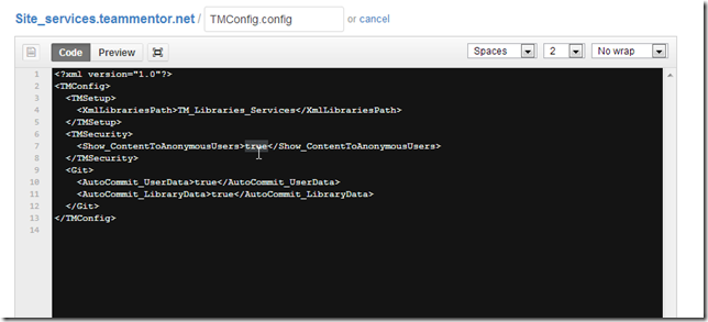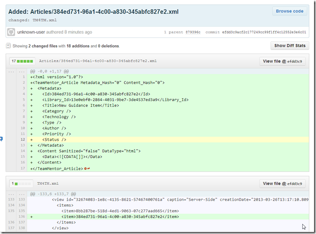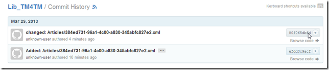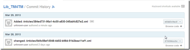 But since the mapping is done via NGit and the account used (in Azure) to connect to GitHub’s Lib_TM4TM has push privileges, it is now possible to make a change in https://tm-tm4tm.azurewebsites.net that is auto committed locally and then into https://github.com/TMContent/Lib_TM4TM
