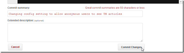 - Changing the ‘View TM article by anonymous users’ status via GitHub