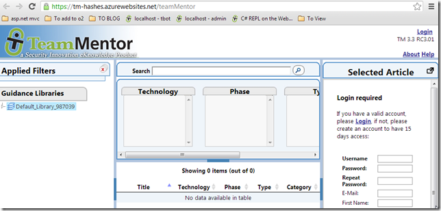 - Creating a new TeamMentor test site using TeamCity, GitHub and Azure