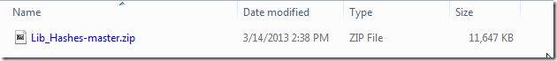 I clicked on the ‘Lib_Hashes-master.zip’ link that appeared at the top: